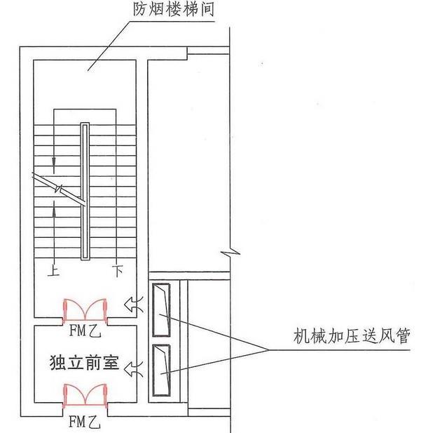 当汽车库设置在建筑的地下部分,如果防烟楼梯间能满足自然通风条件时,则采用自然通风;如不能满足防烟楼梯间应设置加压送风系统,且规范规定地下汽车库与地上建筑部分可以共用机械加压送风系统,但是其风量的选择应采取地上部分送风量的1.2倍加上地下部分送风量的1.2倍来确定;